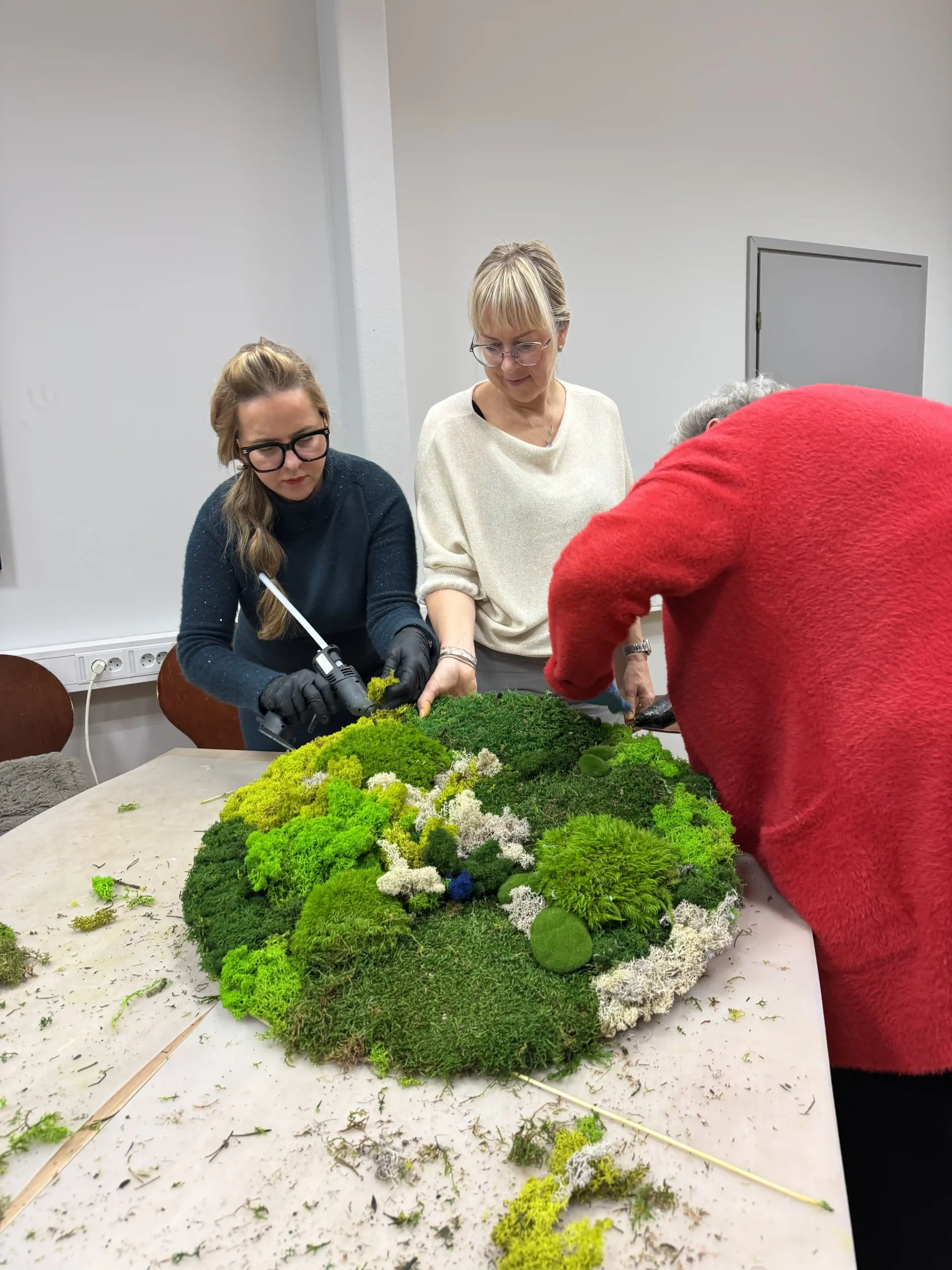 Pakun Teile meeskonnakoolitust, kus fookuses on stabiliseeritud sammal ja ühise kunstilise töö loomine.